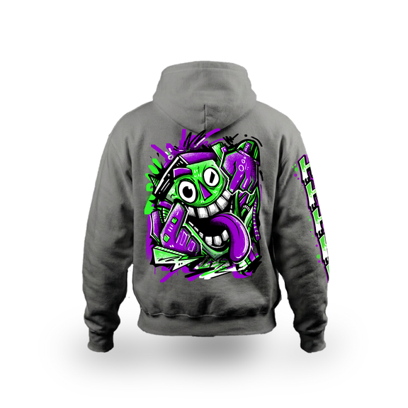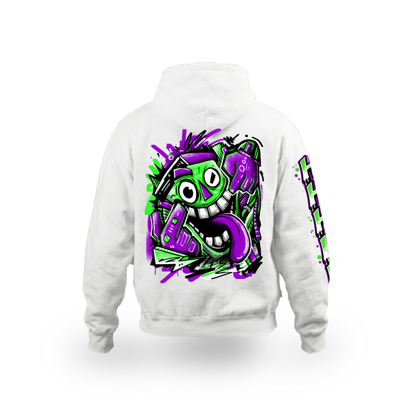 Elevate your streetwear wardrobe with the “Smile Through The Chaos” Hoodie—a bold statement in green, white, and purple typography on a sleek black hoodie.